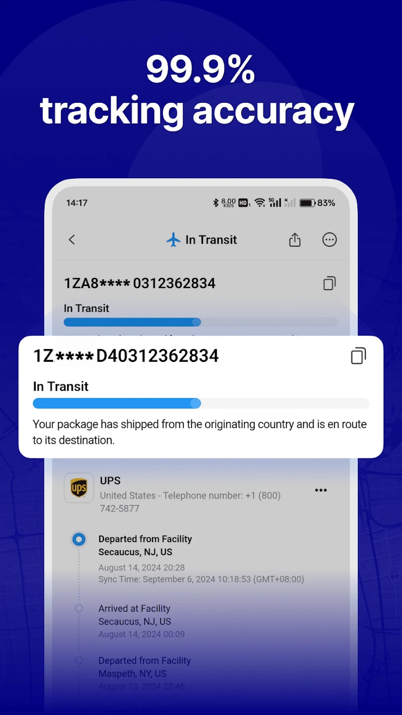 • Order Management & History: Save and organize multiple tracking numbers in folders, view past shipment records, and access saved details easily. This feature matters for busy individuals or businesses handling numerous shipments simultaneously, offering better organization, faster retrieval of past tracking information, and improved time management capabilities compared to manual methods.