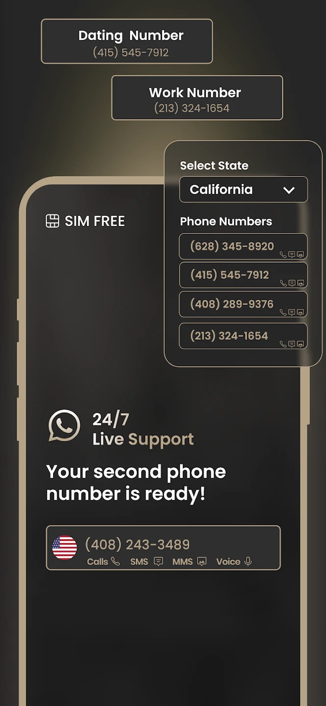 - Global Number Pool Access: Seamlessly discover and select virtual phone numbers available from various global carriers. This saves you the hassle of international roaming and ensures you have a local number wherever you are, making calls and receiving messages locally.