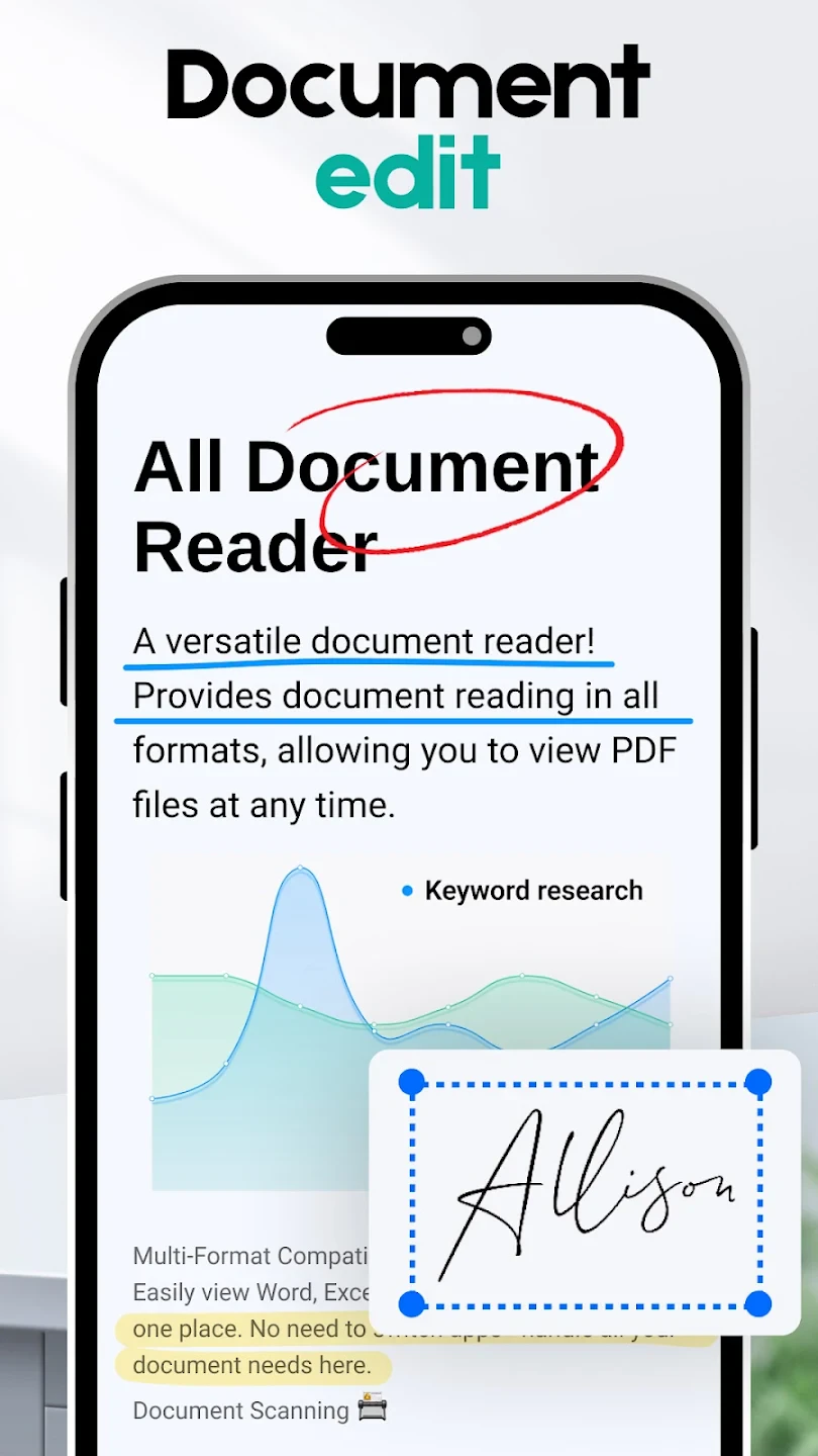 The All Document Reader & Editor is a versatile application designed for viewing, editing, and managing documents across numerous formats on your device. It caters to individuals and teams needing a reliable tool for working with files like PDFs, Word documents, and spreadsheets directly from their smartphone or computer. This tool empowers users to stay productive and maintain control over their important papers without relying on multiple specialized software solutions.