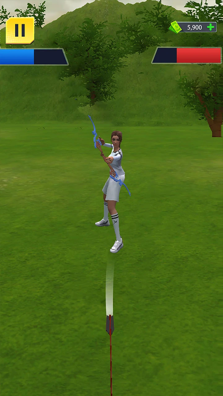 - [Core Gameplay Loop]: Players shoot arrows at various targets across different levels, competing against AI or human opponents. The objective is to achieve high scores or eliminate opponents by precise aiming and quick reactions within timed rounds. Players interact primarily through touch controls, adjusting aim and trigger strength.