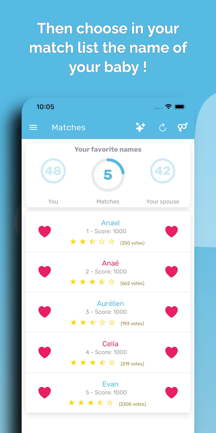 • Name Inspiration Library: Browse thousands of names organized by gender, origin, meaning, and popularity alongside user-submitted suggestions. This feature saves hours of research by providing curated lists and community insights, empowering users to find names that resonate with their cultural background or personal values, making the selection process more efficient and meaningful.