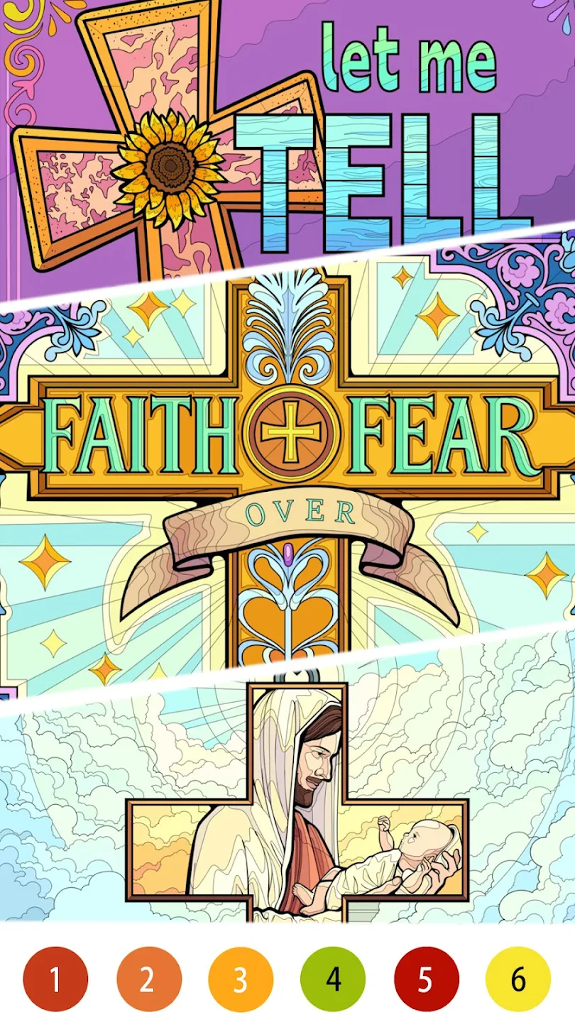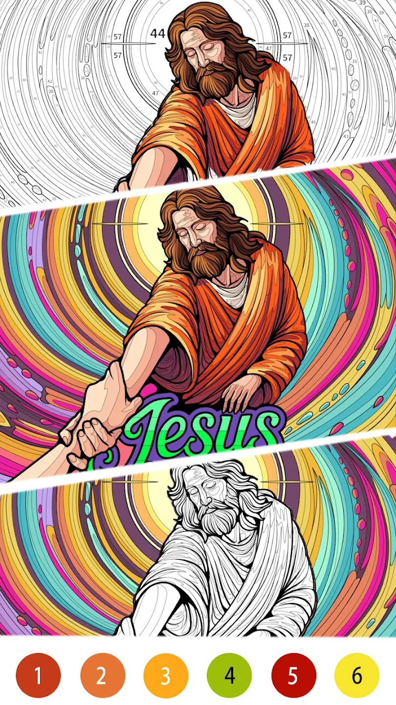 - Core Gameplay Loop: Players select a numbered section and choose from a palette of colors. They fill the sections gradually to reveal biblical scenes, with each completed image unlocking new content. This simple yet engaging mechanic provides a satisfying creative outlet.