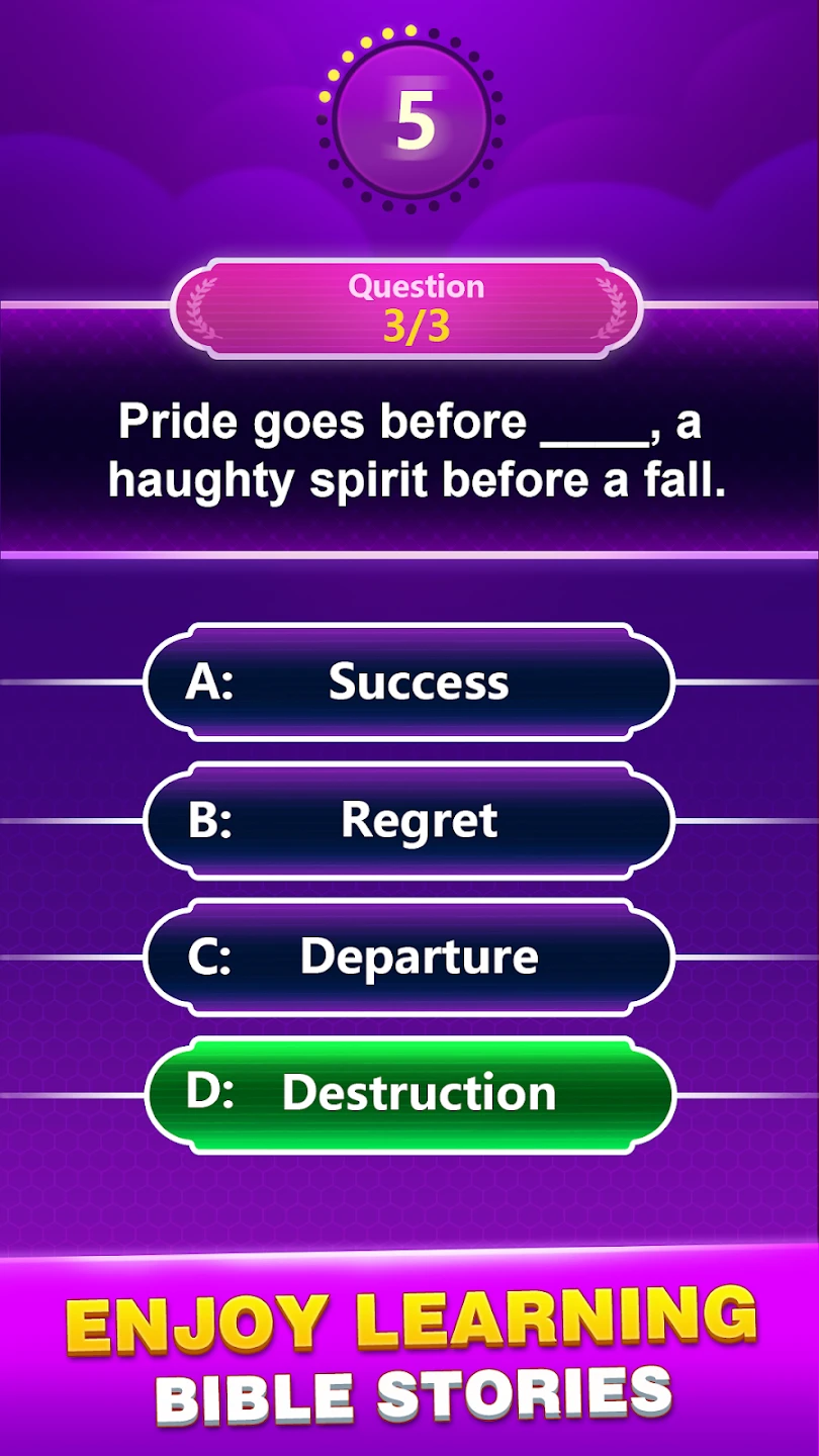 • Step 3: Progress by answering puzzles correctly to unlock new themes, Bible books, and higher difficulty levels, aiming to achieve daily goals and maintain streaks for rewards.