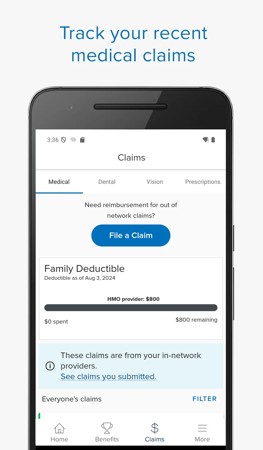 Designed for simplicity and mobile-first usability. Includes quick claim lookup and provider search tools. |