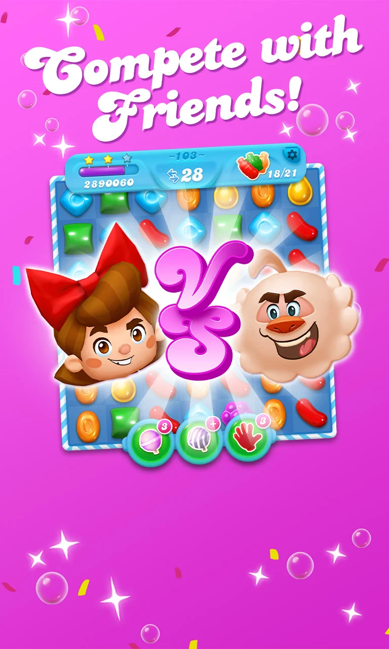 - [Visuals or Art Style]: The game boasts a bright, colorful cartoonish design featuring various candies, soda-related items, and themed level backgrounds (like a soda factory or candy store). Meticulous detail is often put into the expressive animations and effects, bringing the vibrant candy world to life with charm and excitement.