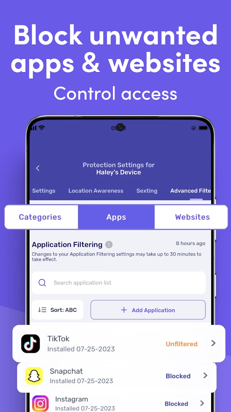 - Application Management: Temporarily freeze specific apps or set usage duration limits per week directly from the Canopy interface. This feature helps manage gaming time effectively, especially during family movie nights or study sessions, by ensuring apps like TikTok don’t consume excessive time. Silent mode override lets you discreetly check usage if you need to address potential overuse.