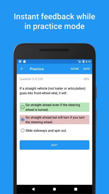 • Practice Testing System: Get familiarized with the actual CDL exam format with our hundreds of questions covering every topic, and see immediate score reports highlighting your strengths and weaknesses for focused improvement.