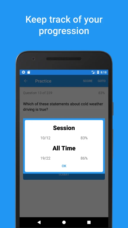 • Progress Tracking Dashboard: Stay motivated with a visual dashboard showing completed sections, practice test scores, time spent studying, and estimated completion time to see exactly how close you are to being test-ready.