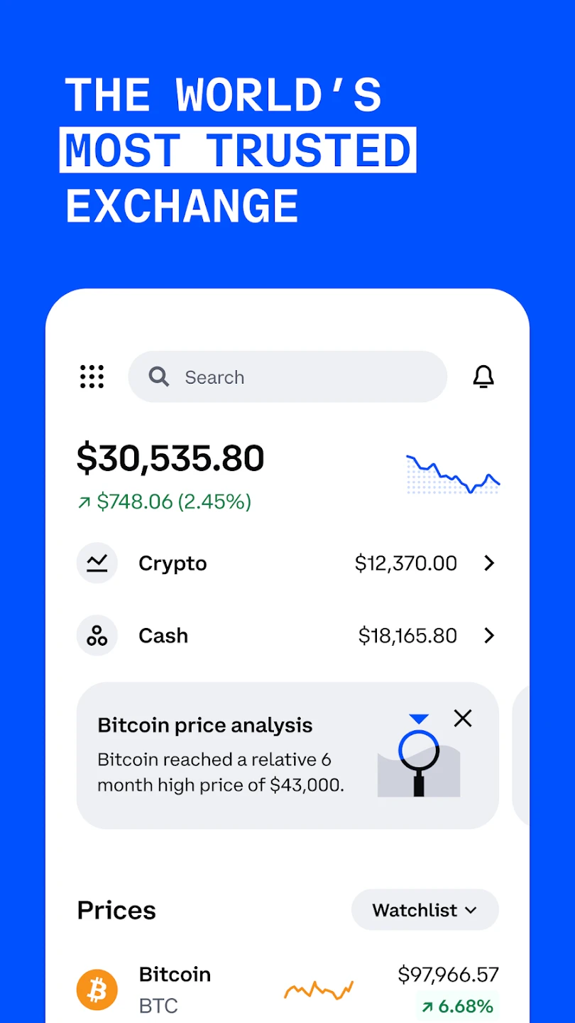 • News Feed & Education: Access the Coinbase news feed and learning resources directly within the app. This integrated feature helps users stay updated on market trends, regulatory news, and educational content, fostering better investment decisions without leaving the platform.
