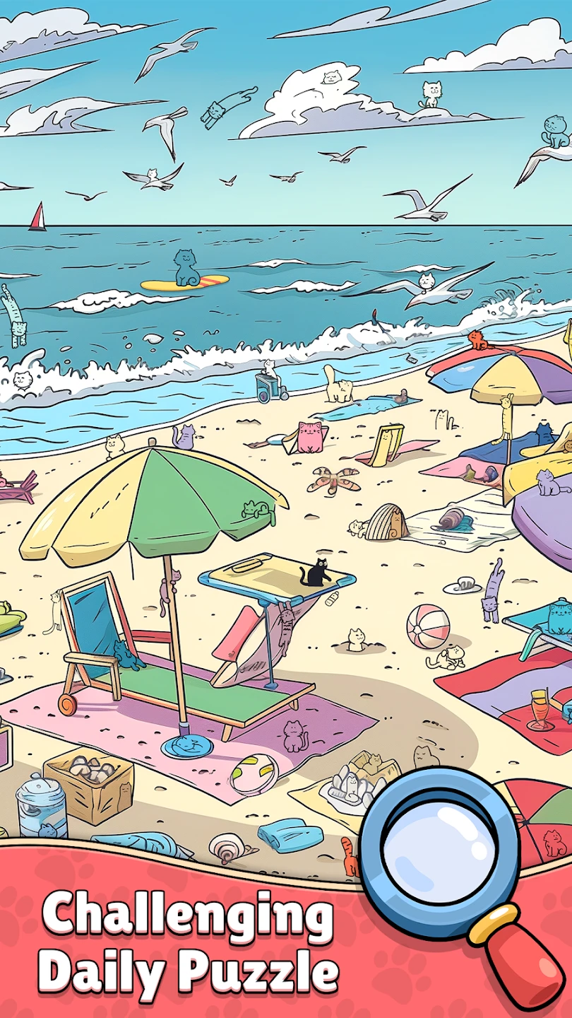 - [Modes or Levels]: “Find The Cat – Spot It!” typically features a single-player campaign spanning many levels across different themes (forest, city, sky, etc.). Each level presents unique environmental puzzles and challenges, offering high replayability through hidden collectibles or secret paths sometimes requiring retries. A potentially simple mini-game mode might be included for quick fun.