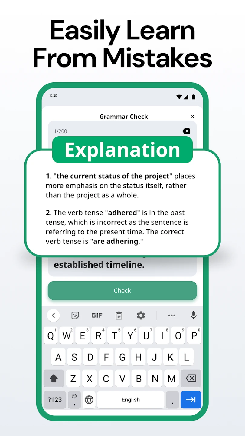 A: While the primary goal is correction, the app can indirectly help improve your skills. By consistently seeing the corrections it makes, you become more aware of common mistakes. Features like style suggestions and synonyms expose you to different ways of expressing ideas. However, the most significant skill improvement comes from actively learning from the corrections and consciously practicing the suggested improvements yourself.