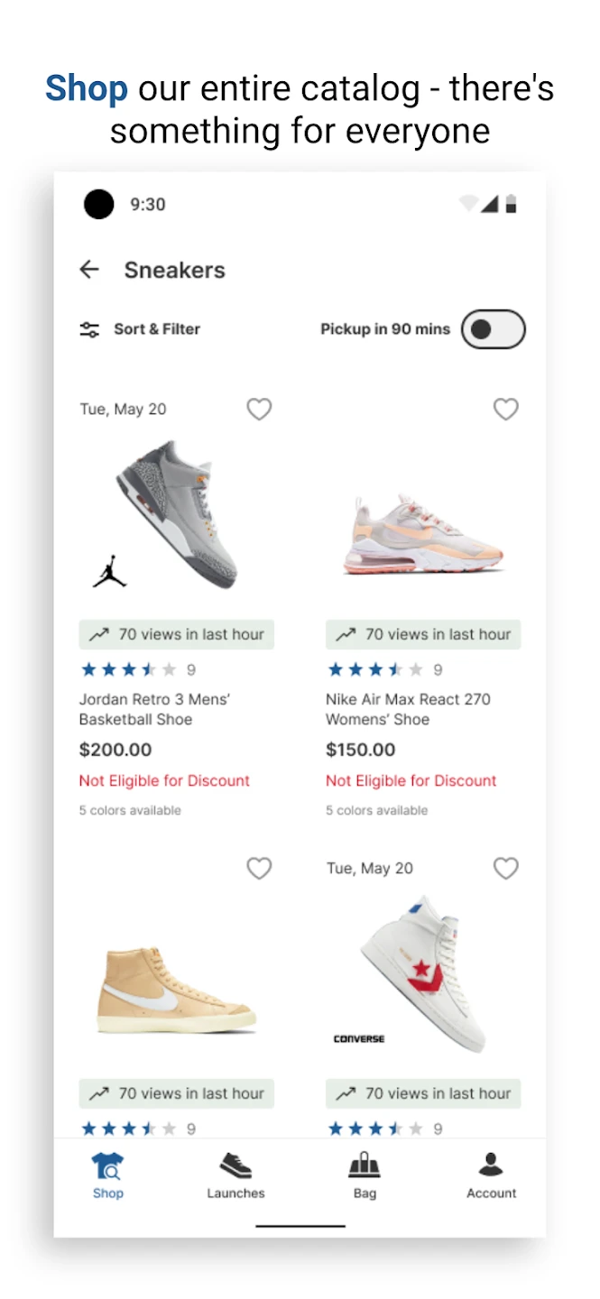 - Product Browser: Seamlessly explore thousands of sneakers, apparel, and accessories from your favorite Hibbett brands. This feature saves time by eliminating website navigation, letting you quickly find specific items or browse collections based on category, allowing you to discover new arrivals or revisit your favorite styles.