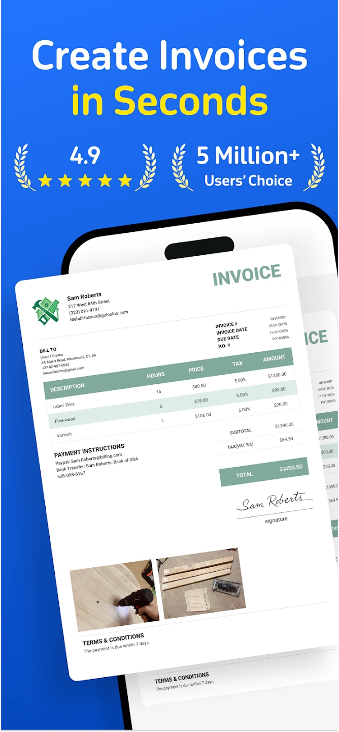 This tool streamlines financial management by providing a quick way to detail work done, materials used, and charges incurred or proposed. The Invoice Maker & Estimate Maker is particularly appealing for scenarios requiring rapid turnaround, like job sites, consultations, or managing cash flow between appointments, ensuring clarity and professionalism without the hassle of traditional accounting software or printing.