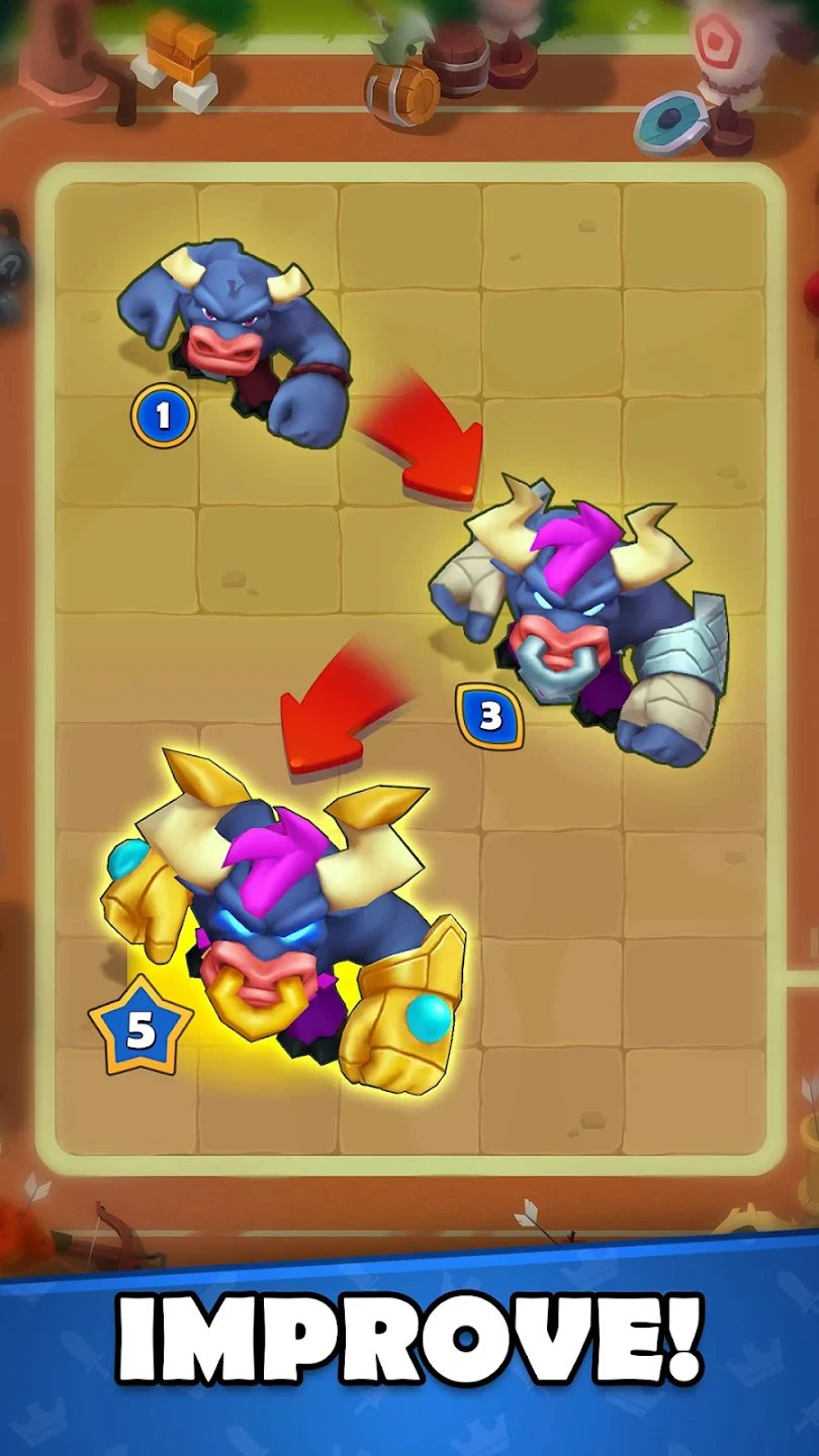 - [Any Special Systems]: Unique to the game is a “Battle Pass” system offering seasonal challenges, exclusive rewards, and visual customization. A crafting system allows combining duplicate units or resources to create powerful special units, adding depth beyond simple level progression.