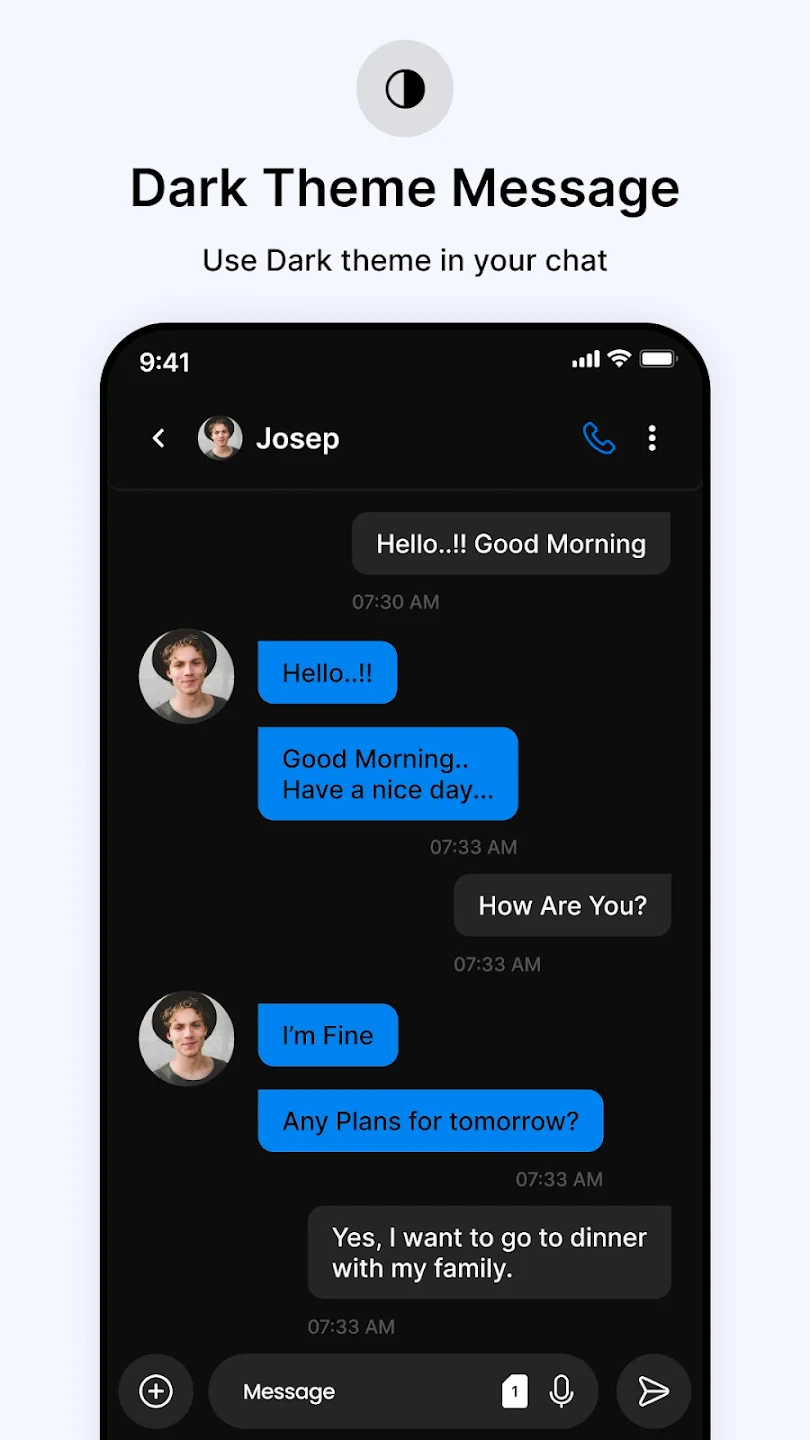 - Custom Themes & Layouts: Users can personalize the interface appearance and message layout for improved user experience. These aesthetic choices support branding for businesses using the app internally and help reduce eye strain during prolonged usage.