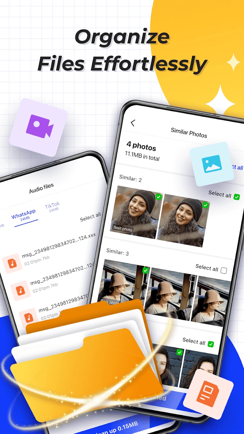 - App Performance Booster: Leverage MiraClean – File Manager’s smart optimization tool that identifies numerous small residual files, temporary app data fragments, emptied cache, and stuck downloads (“ghost files”). By periodically scanning and intelligently categorizing these non-essential elements for safe removal via the user-friendly interface, it frees up valuable storage considerably more effectively and with greater precision than generic cleaners.