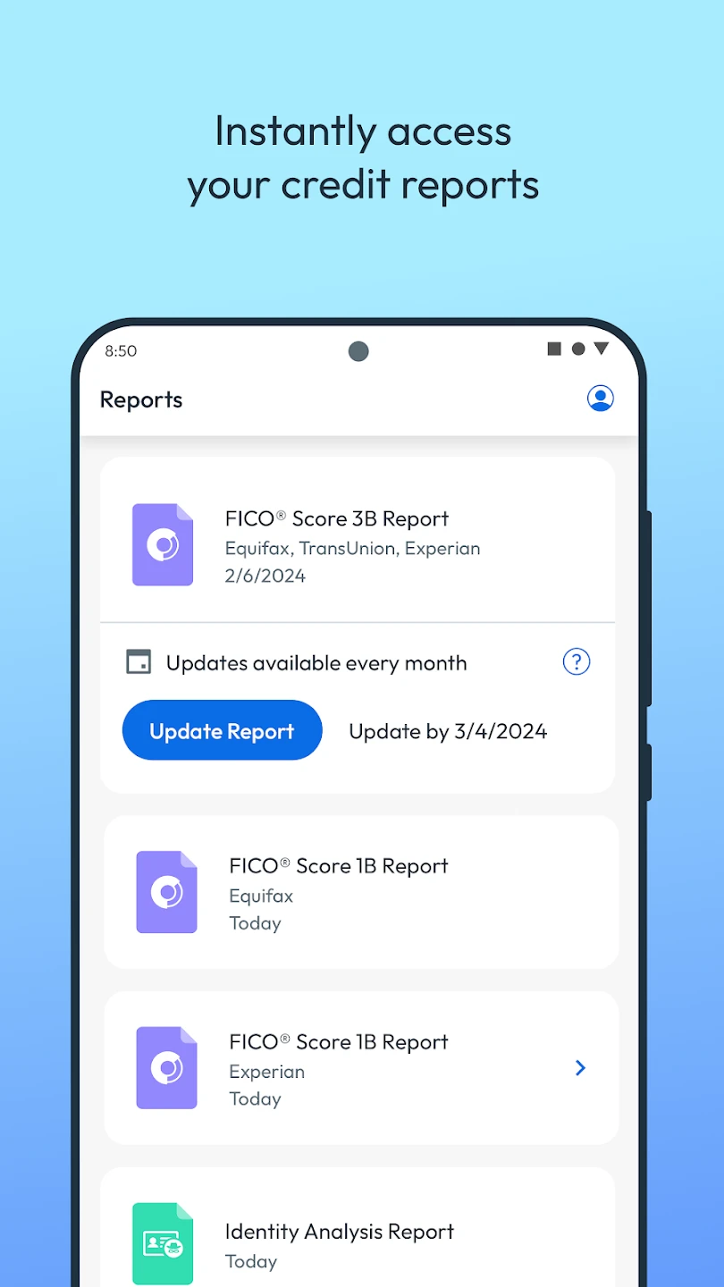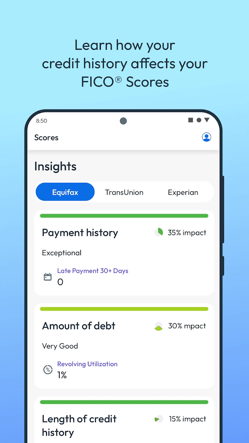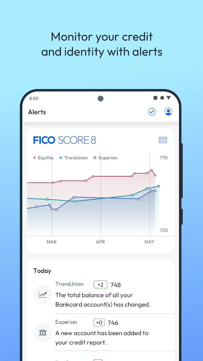 - FICO Score Monitoring: View your FICO credit score and track changes over time with regular updates. This feature helps you stay informed about your financial standing, allowing you to make timely adjustments if your score deviates unexpectedly.