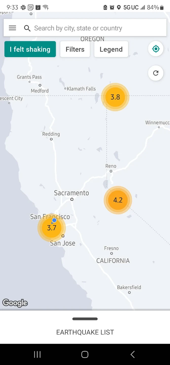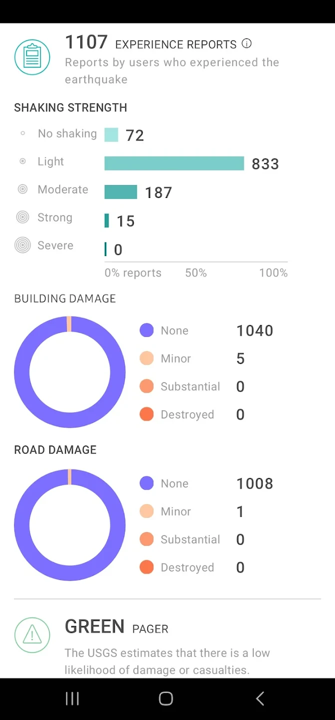 • Integration with USGS: The app integrates directly with the USGS (United States Geological Survey) earthquake monitoring system. When a significant seismic event is detected either by the app’s sensor network or by USGS networks, it is promptly relayed to the USGS, contributing valuable data for earthquake science and public awareness. This integration ensures alerts are compared with official data sources, enhancing credibility and providing comprehensive information for different user needs and geographic locations.