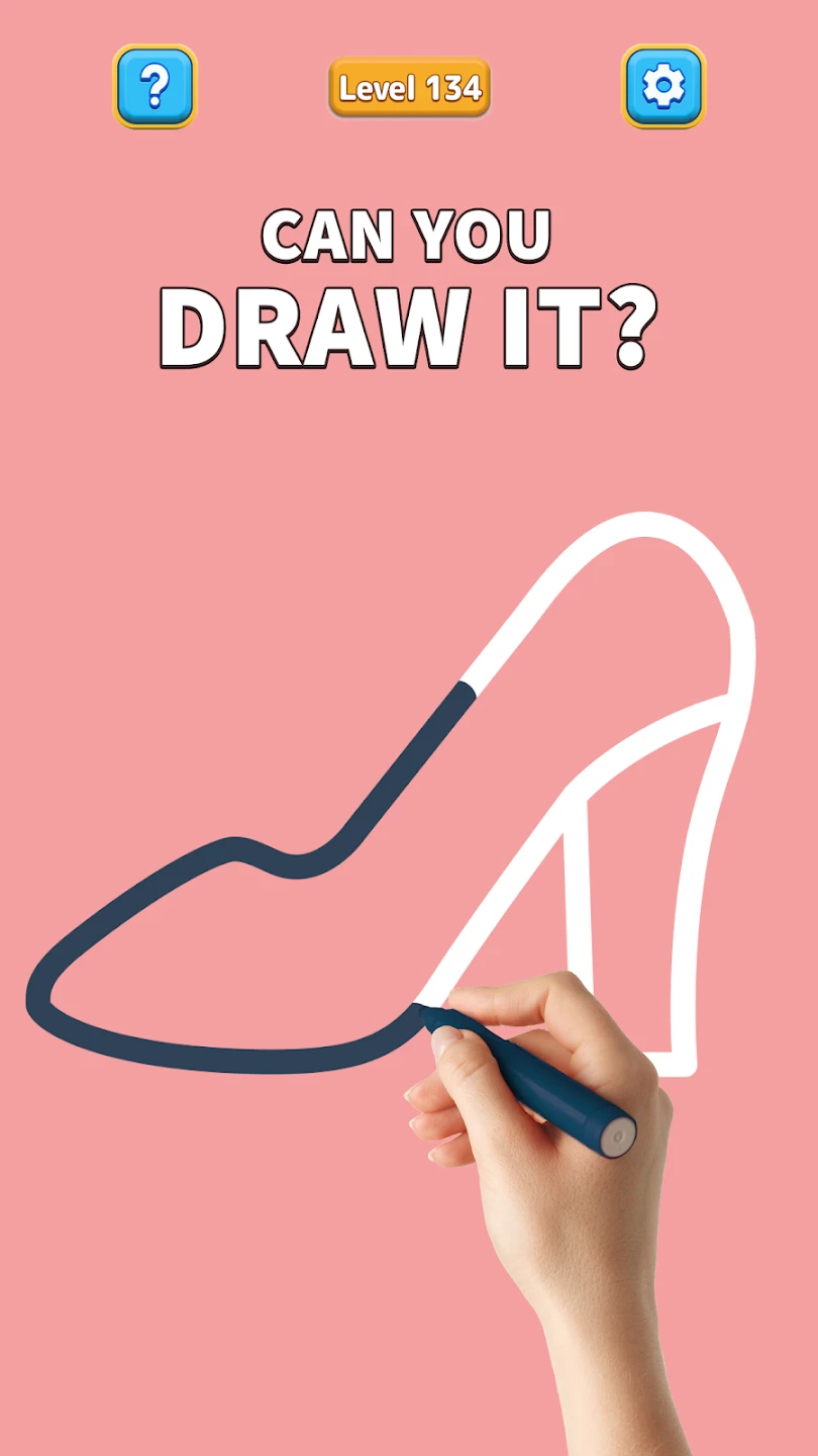 - [Controls or Interface]: Controls are touch-based, utilizing simple on-screen buttons for actions like restarting a level. Players initiate the draw by tapping a gem and then swipe or drag across the screen to create the single continuous line connecting the selected gems. The interface is designed for ease of use on mobile devices, with clear visuals guiding the player’s touch.