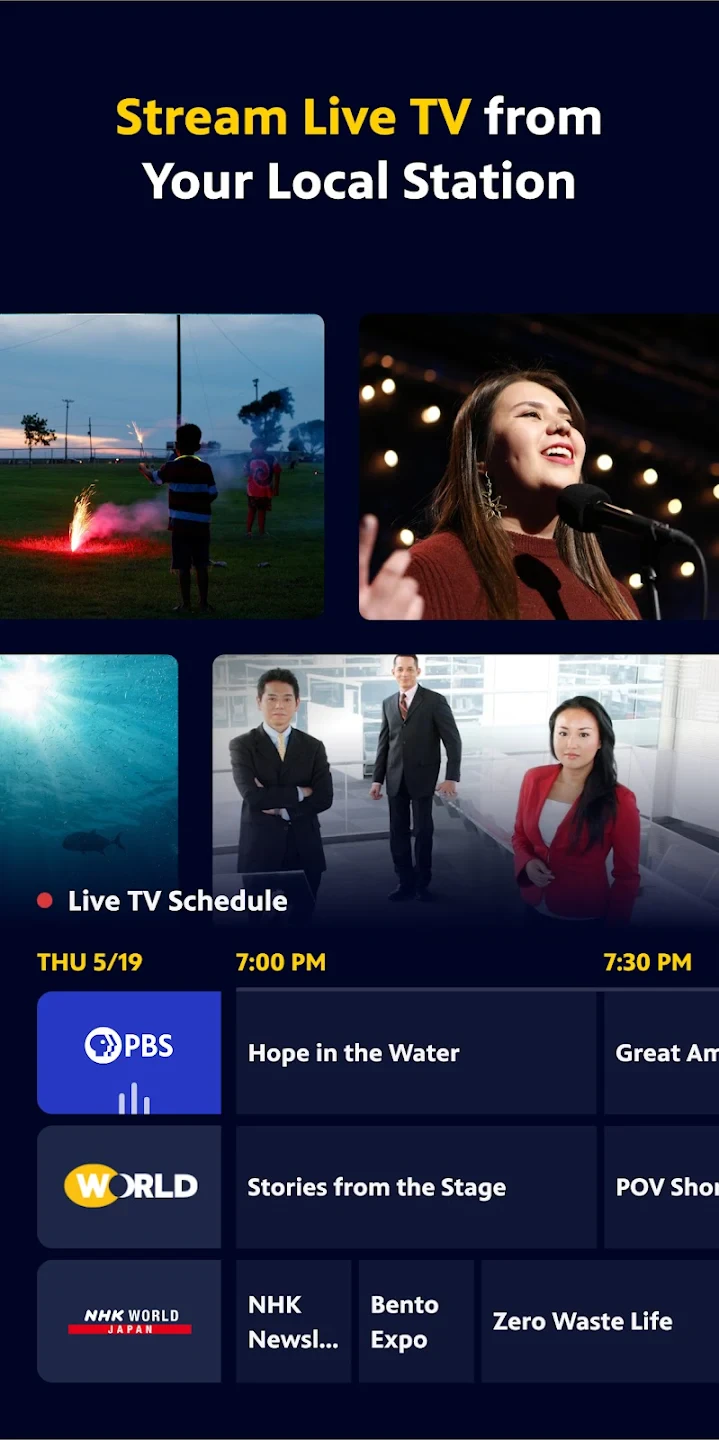 • Live TV Viewing: Instantly stream your favorite PBS broadcasts as they air, allowing you to watch breaking news or live specials without missing a moment. This eliminates the need for recording shows or remembering broadcast times, perfect for catching live events.