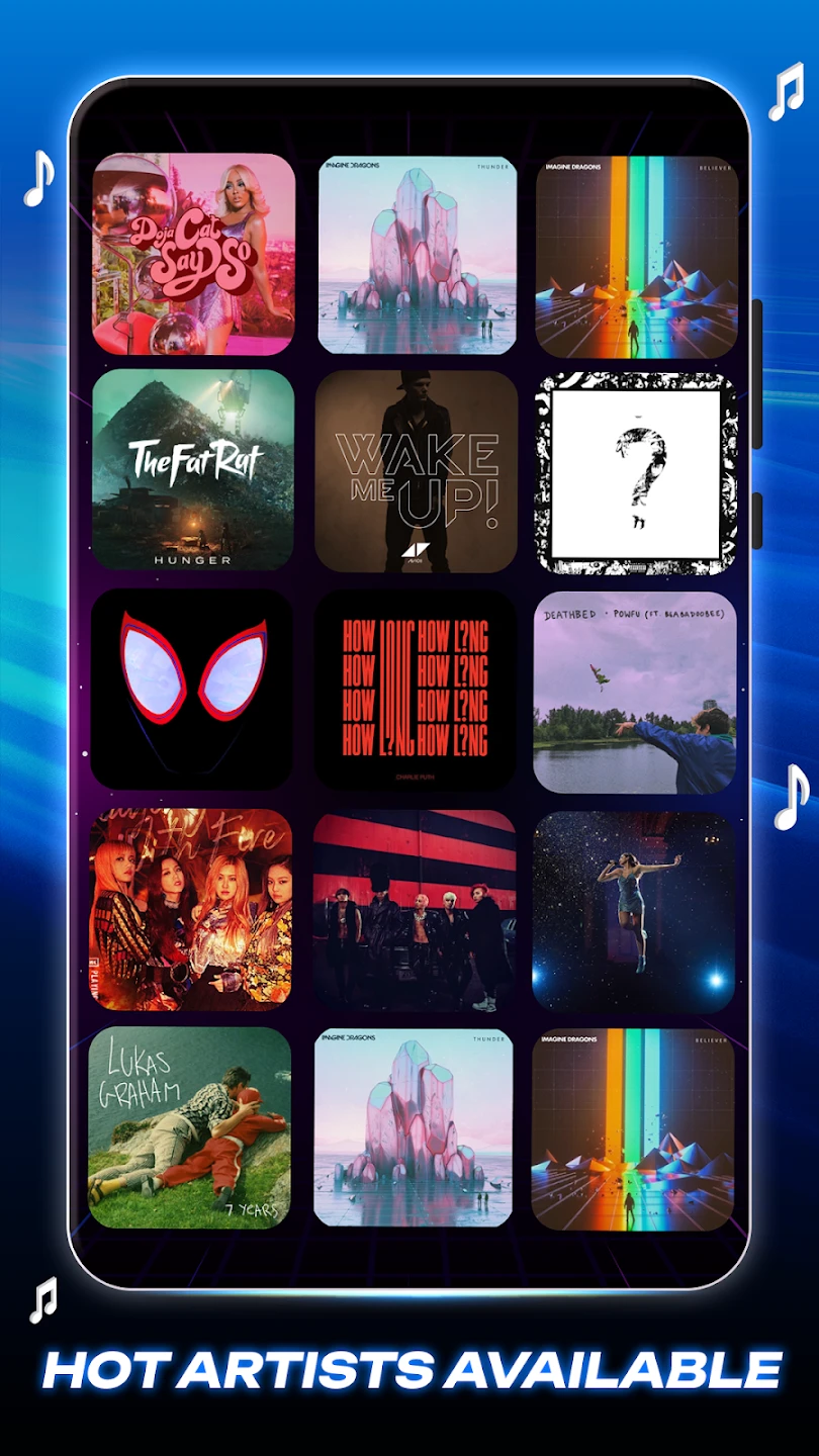 • [Visuals or Art Style]: The game boasts vibrant, colorful graphics with dynamic and often appealing animations. Expect stylized music videos, clear visual indicators for gameplay (like falling notes or bars to hit), vibrant backgrounds, and perhaps a magical theme involving glowy stars or stars falling from the sky, integrated into the layout and interface design. The overall presentation aims for a fun and energetic feel.