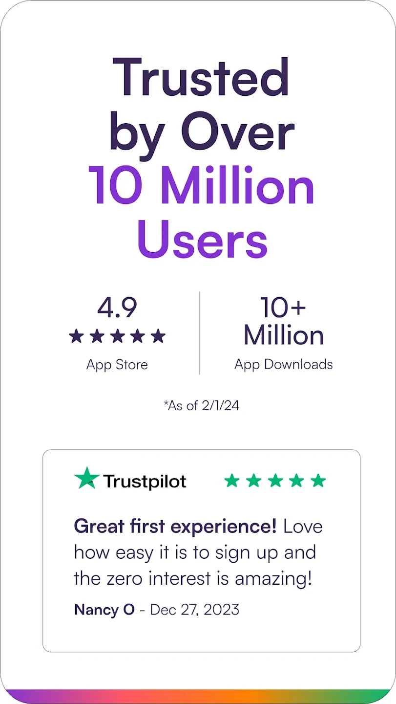 Another widely adopted BNPL app known for its simple two-week installment plans. Focuses on ease of use with minimal setup required. |
