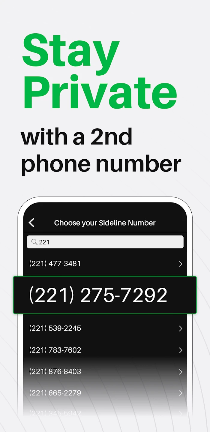 - Virtual Number Pool Selection: Sideline provides you with a selection of available virtual phone numbers to choose from, ensuring you have an appropriate number for your needs. This feature allows you to maintain a professional image or align the number with your brand identity, enhancing your overall communication strategy.