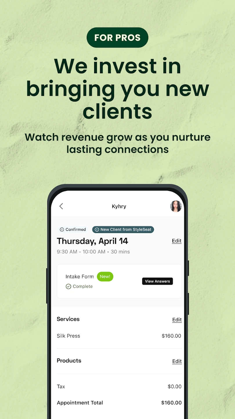 - Client Relationship Management: Organize client profiles with notes on hair type, color preferences, and spending history, making it easier to personalize services and build lasting customer loyalty with a single tap.