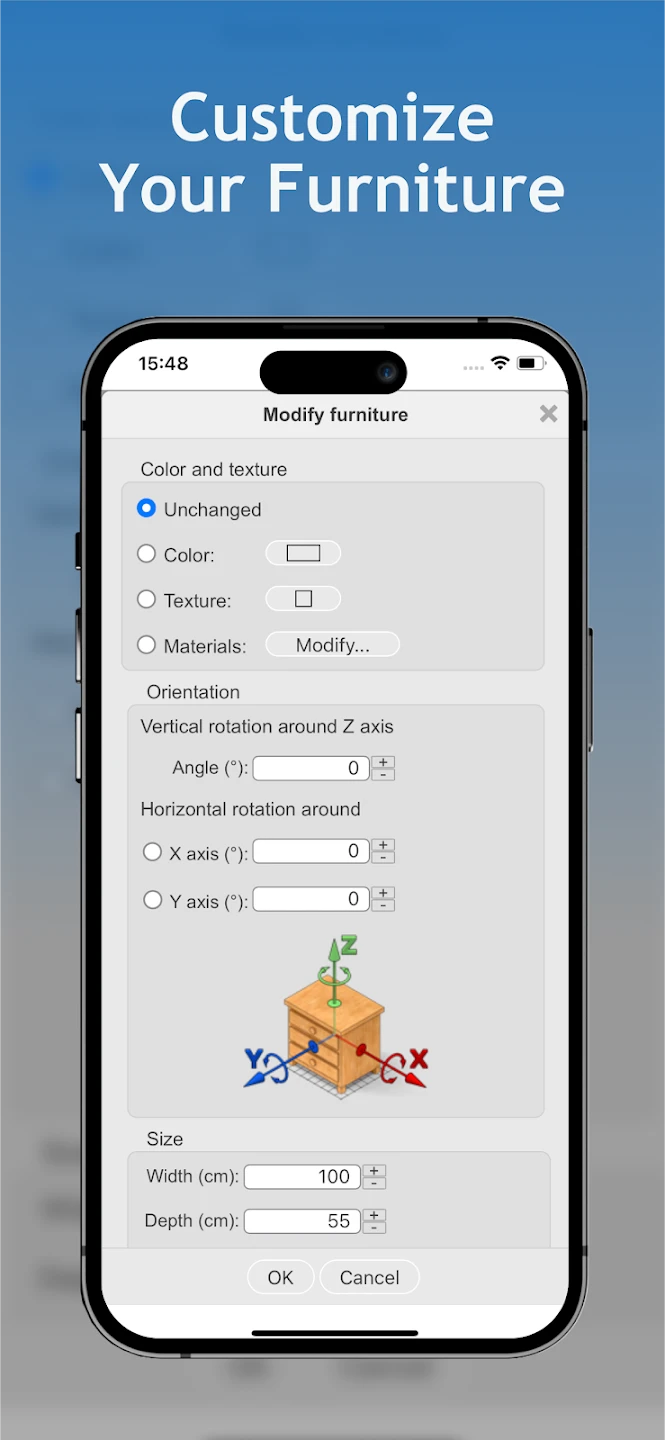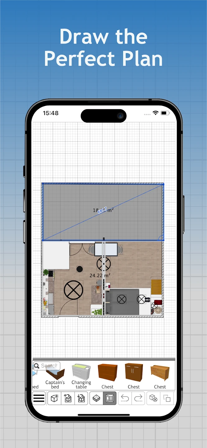 - Measurement Tools: Seamlessly measure existing rooms using your phone’s camera and GPS, then scale imported photos into accurate design surfaces. This powerful feature transforms your physical space into a precise digital canvas, enabling perfect proportioning of elements and accurate furniture placement based on real-world dimensions.
