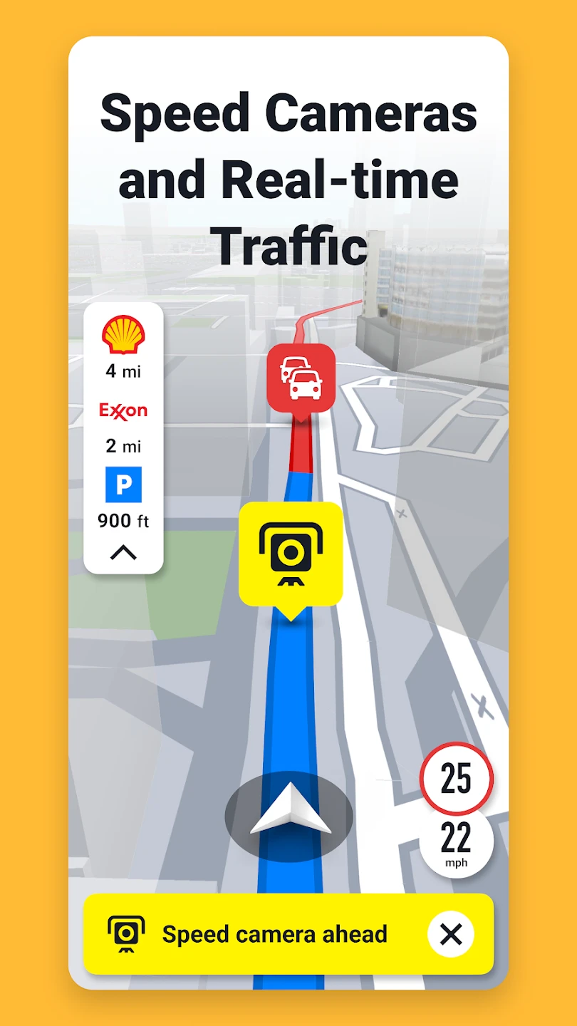 - Voice Guidance & Turn-by-Turn Navigation: Listen to clear, timely instructions via voice prompts as you reach each turn within the Sygic GPS Navigation & Maps app, minimizing the need to constantly glance at the small screen. This dedicated navigation mode keeps you focused on the road, significantly enhancing safety for drivers, motorcyclists, and cyclists.