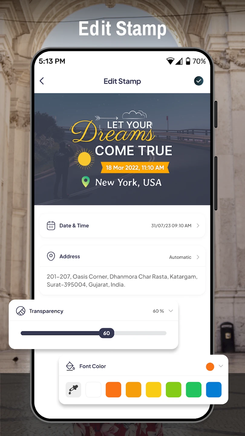 A: Yes, you can import photos from your gallery that lack built-in GPS. Tagofy – Geotag Map Camera automatically parses existing EXIF data if available and lets you manually add coordinates or search for locations to geotag these photos.