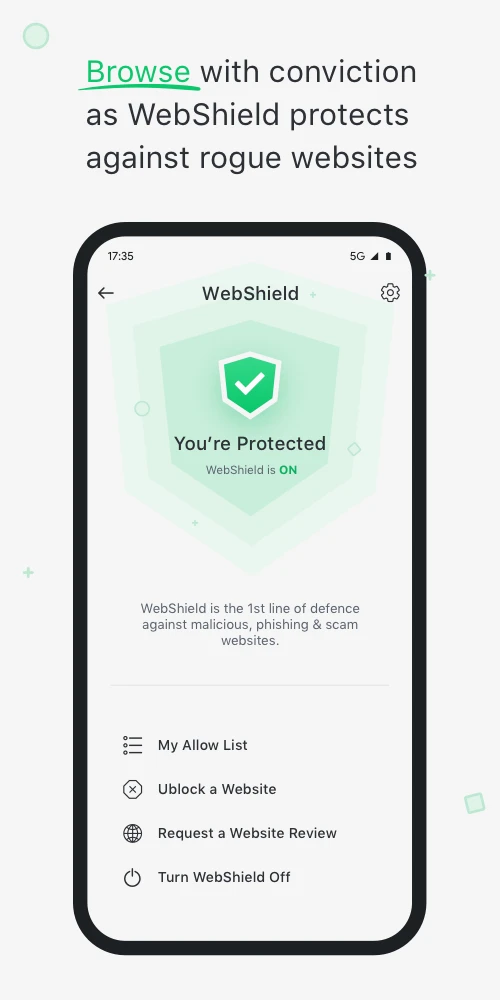 - Anti-Spam & Phishing Protection: Actively filters out malicious emails, suspicious messages (SMS/MMS), and deceptive links encountered within apps. It helps prevent you from accidentally clicking on harmful links that could lead to malware downloads or steal credentials by recognizing phishing attempts designed to mimic legitimate sites. This feature is crucial for navigating emails and messages safely.