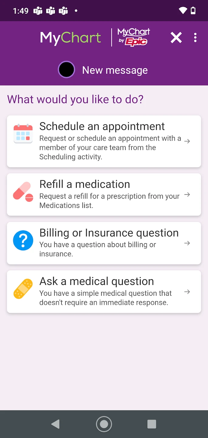 - Secure Messaging: Communicate quickly and privately with your doctor, nurse, or clinic staff. This feature eliminates the need for lengthy phone calls or office visits for non-urgent questions, offering faster, convenient engagement with your care team between visits.