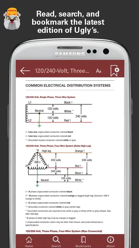 - Searchable Database: Efficiently navigate the extensive reference library by searching for specific terms, NEC articles, or calculation types; this feature drastically cuts down lookup time compared to linear browsing through books or flipping through index pages.