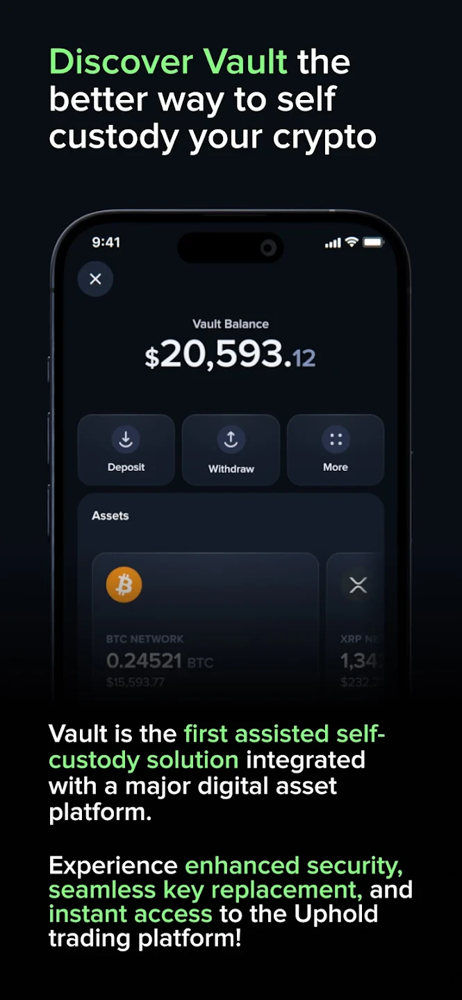 • Secure Account Management: Uphold’s core feature ensures a safe and regulated experience for managing your digital assets. It offers multi-layered security, including bank-level encryption, instant freezing capabilities, and robust two-factor authentication, providing peace of mind when trading or storing funds.