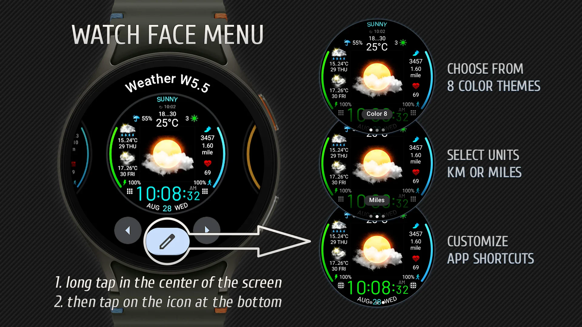 Its key appeal lies in providing a quick, glanceable overview of the weather without needing a full app launch, making it ideal for busy professionals or anyone aiming for a cleaner, more integrated look on their smartwatch interface. The Weather watch face W5.5 enhances situational awareness by keeping relevant weather details readily visible throughout the day.