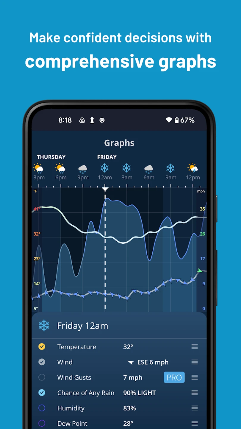 • Detailed Forecast by Day/Hour: Get a five-day forecast plus hourly breakdowns for your location. This helps you plan activities, pack appropriately for different weather scenarios, and stay prepared for potential weather changes throughout the day, making you feel more in control of your environment.