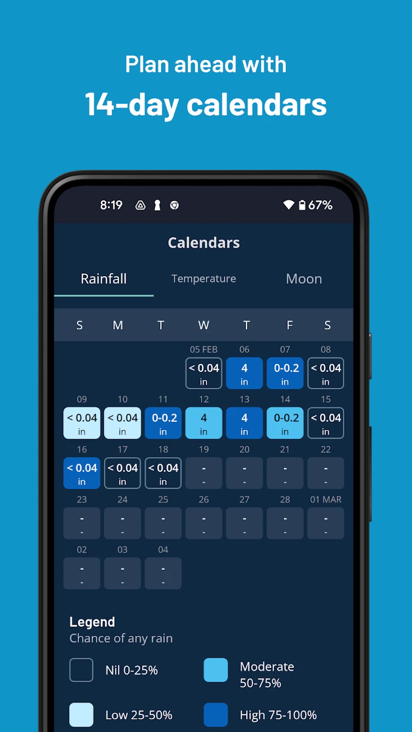 • Extensive Observation Data: Utilize real-time data feeds including temperature, humidity, wind speed & direction, atmospheric pressure, and rainfall rates. This feature allows for detailed tracking of local conditions, proving invaluable for understanding microclimates or verifying forecast accuracy for specific events.
