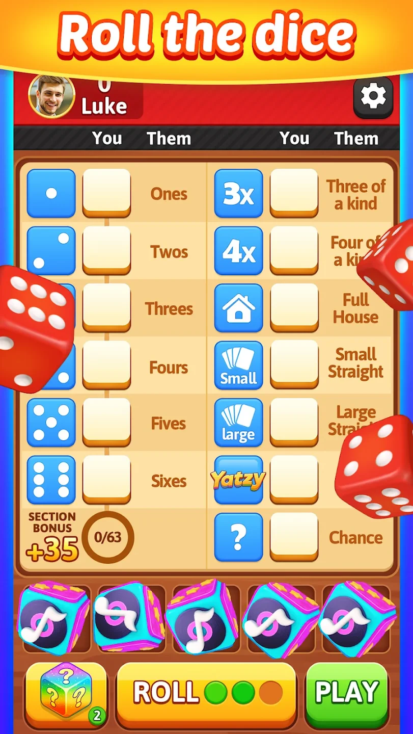 - [Controls or Interface]: Gameplay is typically touch-friendly on mobile devices, allowing you to tap individual dice to re-roll them, swipe to navigate the scorecard, and touch buttons for special actions. The interface is intuitive, with clearly marked dice, score categories, and game state information.